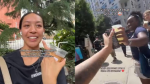 Picture this: You are walking down the street when suddenly a woman playfully raises her glass of beverage toward you,...