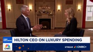 CNBC’s Sara Eisen speaks with Hilton CEO Chris Nassetta to discuss the reopening of the Waldorf Astoria Hotel, luxury spending...