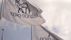Novo Nordisk flags flutter outside their office in Bagsvaerd, on the outskirts of Copenhagen, Denmark, July 14, 2025. Tom Little...
