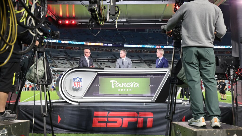 A general view of the ESPN Monday Night Countdown booth prior to the game between the Jacksonville Jaguars and the Cincinnati Bengals at EverBank Stadium in Jacksonville, Florida, on Dec. 4, 2023.