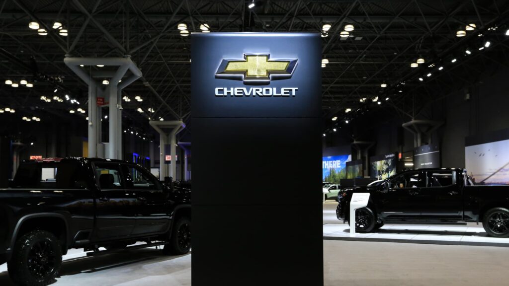 The Chevrolet display is seen at the New York International Auto Show on April 16, 2025.