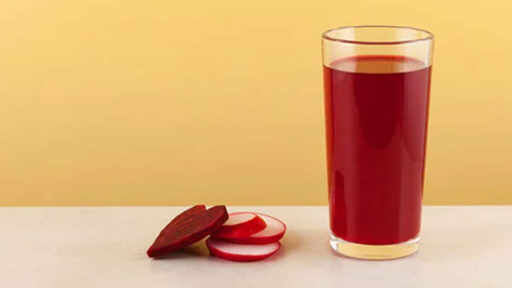 It is basically gajar kanji with beetroot added to it. Crunchy beetroot and carrot, fermented with mustard powder, salt and red chilli powder, make for a perfect drink to tantalise your taste buds. Click here for the beetroot-gajar kanji recipe.