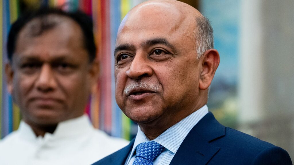 IBM CEO Arvind Krishna appears at a Diwali celebration in the Oval Office of the White House in Washington on Oct. 21, 2025.
