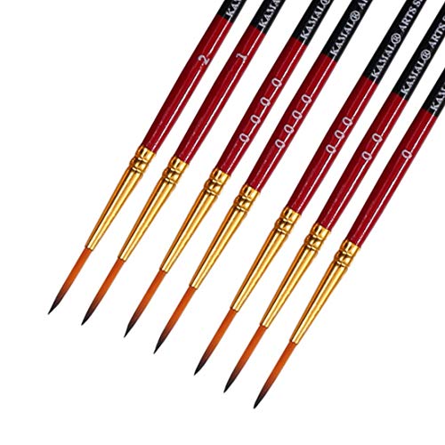 KAMAL Artist Quality Detail and Script Liner Set of 7 for Artists in TAKLON, for Oil Painting, Modern Art, Nail Art, Ganapati Painting, Intricate Painting