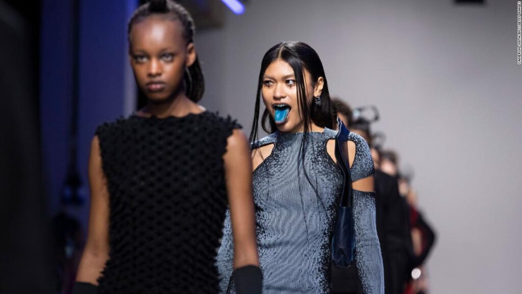 Matty Bovan equally found inspiration in film. His baroque, sci-fi-looking creations are in part influenced by “Blade Runner” (1982). “It was positively dripping off the screen at me,” Bovan told CNN over video call. “I reference it a lot. It’s one of the pinnacles of production, costume design, I love it.”