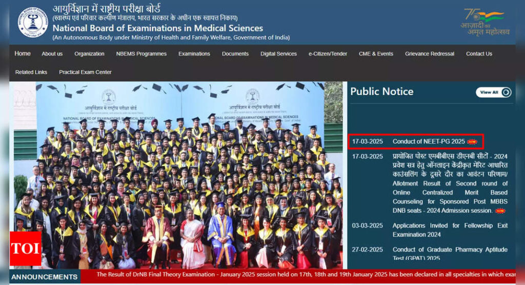 NEET PG 2025 exam to be held on June 15, check official notice here – The Times of India