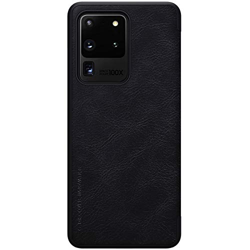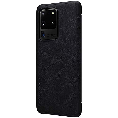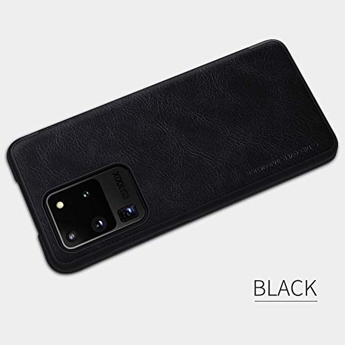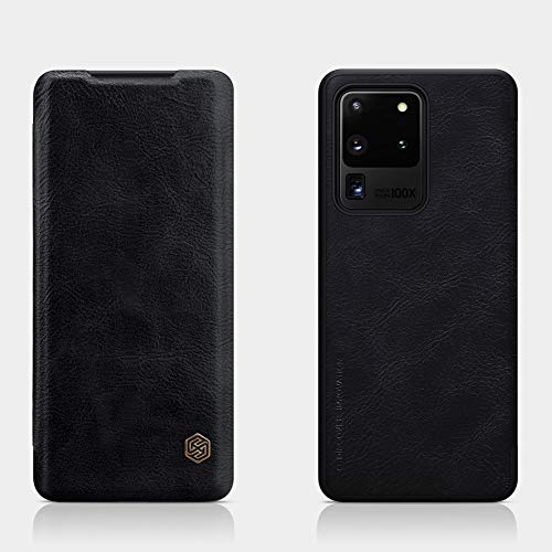 Nillkin Case for Samsung Galaxy S20 S 20 Ultra 5G (6.9″ Inch) Qin Genuine Classic Leather Flip Folio + Card Slot Black Color