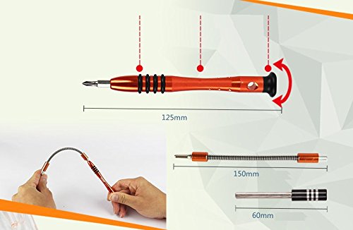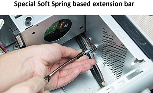 The extended spring lever helps one to easily reach the generally inaccessible corners of devices. It works along with the handle. It also comes with a screwdriver conversion extension bar.