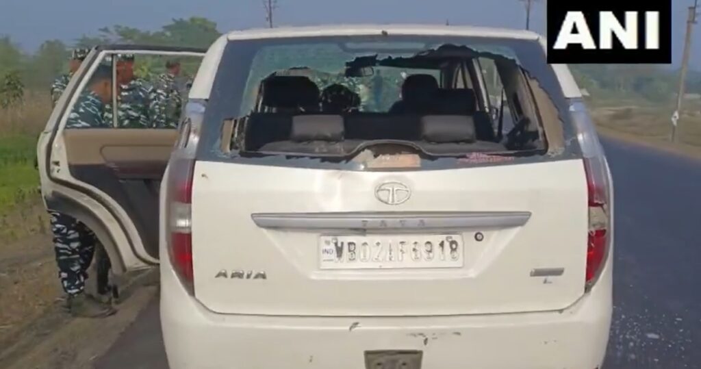 Visuals of the incident showed windows of the car broken. Security officials have arrived at the spot and are conducting an investigation.