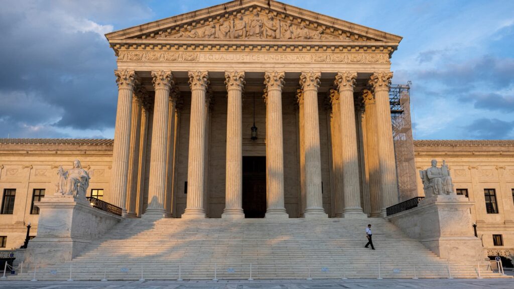 A security guard walks down the steps of the U.S. Supreme Court in Washington, U.S., July 19, 2024.