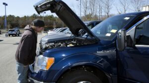 A customer looks at a Ford F-150 pickup truck at a CarMax dealership in Brandywine, Md.Hasan Sarbakhshian | Getty ImagesCarMax...
