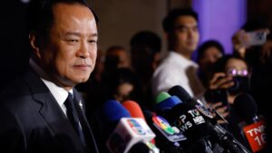 Anutin Charnvirakul, Thailand's prime minister, speaks to members of the media on the sidelines of a seminar in Bangkok, Thailand,...