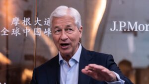 Jamie Dimon, chief executive officer of JPMorgan Chase & Co., during a Bloomberg Television interview on the sidelines of the...