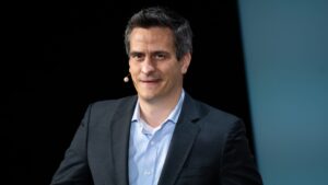 Warner Bros. Discovery Chief Financial Officer Gunnar Wiedenfels walks to a session at the Allen & Company Sun Valley Conference...