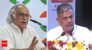 Jairam Ramesh and Dattatreya Hosabale (R) NEW DELHI: Congress general secretary Jairam Ramesh on Friday sharply criticised the Rashtriya Swayamsevak...
