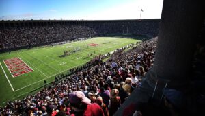 FILE PHOTO: A general view of the field during the Yale Bulldogs vs Harvard Crimson football game at Harvard Stadium...