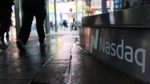 A cargo ship sits in New York Harbor on Nov. 19, 2025 in New York City. Spencer Plat | Getty...
