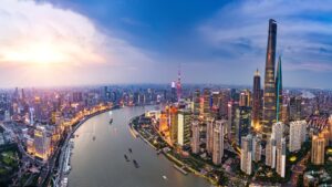 SHENZHEN, CHINA - AUGUST 26: An aerial view of the Shenzhen skyline on August 26, 2020 in Shenzhen, Guangdong Province...