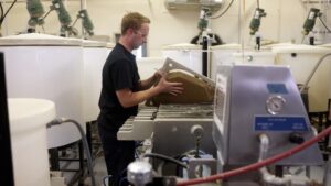 Alex Jech walks past equipment that will become part of the production line at USA Rare Earth's facility in Stillwater,...