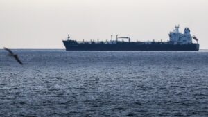 The Texas Voyager oil tanker sits anchored off the coast of Chevron's El Segundo Refinery in El Segundo, California on...