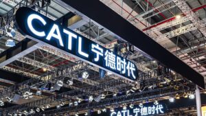 CATL booth is seen during the 21st Shanghai International Automobile Industry Exhibition (Auto Shanghai 2025) at the National Exhibition and...