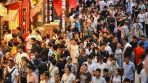 Tourists visit the Confucius Temple market area in Nanjing, Jiangsu province, China, on Oct. 1, 2025.Cfoto | Future Publishing |...