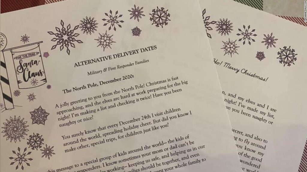 “I found myself overwhelmed with special requests for families with their own circumstances,” she told CNN. Stephanie tailored her earliest letters for military and first responder households.