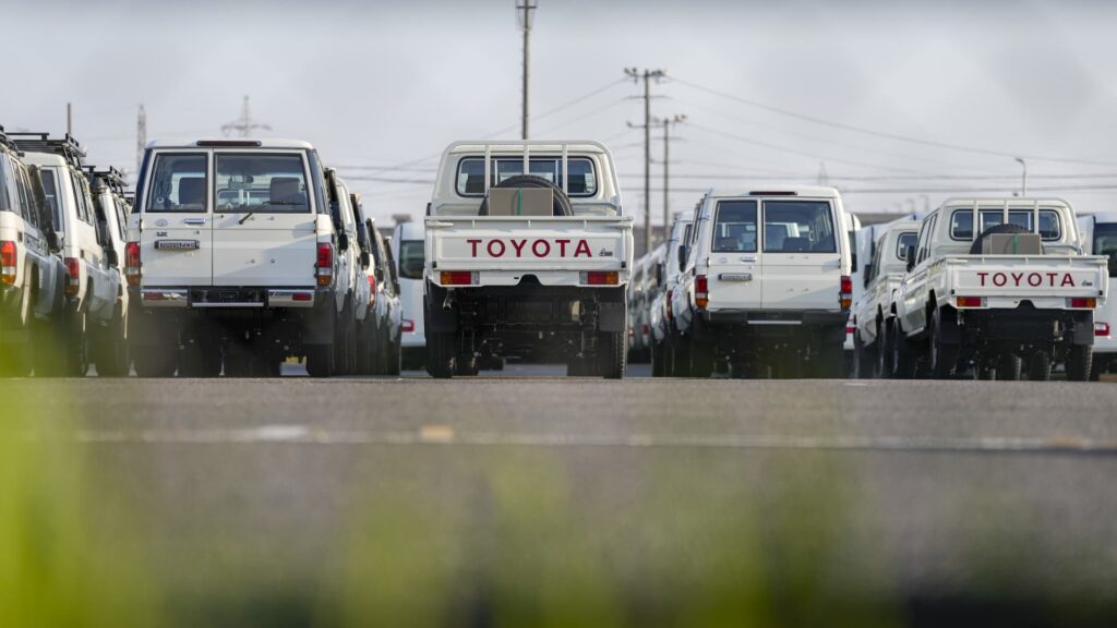 Toyota Motor Corp. vehicles bound for shipment at the Port of Nagoya in Tokai, Aichi Prefecture, Japan, on Tuesday, April 29, 2025.