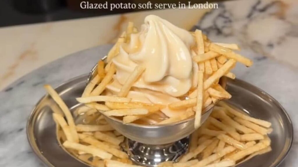 When the summer heat gets too much to handle, nothing beats the joy of having ice cream. It is the ultimate treat for foodies looking to cool down in the tastiest way. From classic flavours like chocolate, vanilla, and strawberry to more adventurous ones like mango chilli, matcha, and cookie dough, there is something for every mood and craving. Whether you enjoy your scoop in a cone, cup or as a sundae loaded with toppings, ice cream is the perfect mix of fun and flavour. But just when you think you have seen it all, the internet brings in a wild twist. A video shared by the Instagram page @digitaldiarylondon is going viral for showing a dish that is as weird as it is exciting – a soft serve ice cream served with potato fries. Yep, you read that right. Called the “Glazed Potato Soft Serve,” this crazy combo is available at a restaurant named Chin Chin Ice Cream in London. The soft serve comes with a generous helping of fries and is even topped with potato peel sauce.