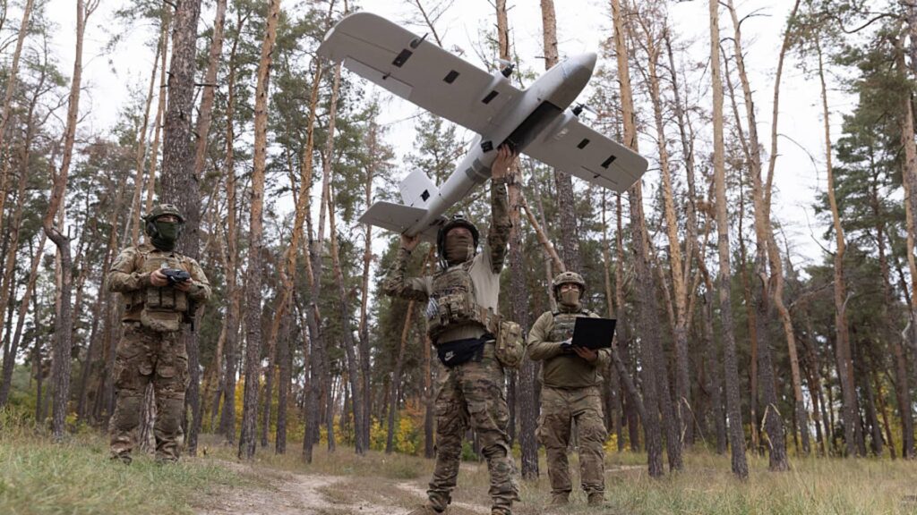 Ukrainian soldiers prepare the UAV ‘Evanger’ for launch on September 24, 2025 in Kharkiv Oblast, Ukraine. Ukrainian soldiers use UAVs to target Russian positions and fortifications.