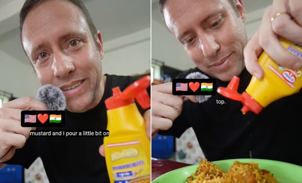 Fusion foods are not a new concept. Often, social media users come across recipes made with completely contrasting ingredients, leaving the internet surprised. The latest such combination features a blend of Indian biryani with American mustard. In a video now going viral, an American digital creator named John is seen preparing to enjoy a plate of chicken biryani made by his Indian wife. On the plate in front of him, a generous portion of biryani is served, accompanied by what appears to be raita.